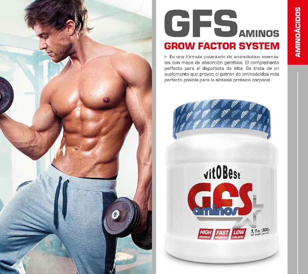 Los aminoácidos esenciales son componentes proteicos que el organismo no es capaz de producir, pero necesita adquirir a través de la dieta para garantizar su correcto funcionamiento y desarrollo.Entre sus funciones globales destacan la regeneración muscular, ósea y de tejido dérmico; la formación de hemoglobina, colágeno, anticuerpos y de neurotransmisores que estimulan la sinapsis nerviosa; la prevención de factores de riesgo cardiovascular; y la metabolización de grasas.GFSaminos, de Vitobest®, es un complemento alimenticio de aminoácidos esenciales patentado y perfectamente diseñado tanto para mejorar el rendimiento funcional de los atletas (aumenta en un 8 % el rendimiento deportivo)1, como para prevenir y controlar la pérdida de masa y fuerza muscular2. Su calidad y funcionabilidad están avaladas por la Universidad de Alicante.Elaborado a partir de aminoácidos esenciales de origen vegetal por fermentación producidos por Ajinomoto® (marca japonesa que se distingue por tener los más altos estándares en materia de calidad), nuestra fórmula tiene un patrón de absorción rápido (unos 23 minutos), efectivo (casi el 99,9 % en los primeros 100 cm del intestino delgado) y único (otras fuentes de proteína requieren de 3 a 5 horas para hacerlo).Otras fuentes de proteínas GFSaminos de Vitobest® Capacidad de absorción Gran parte de los nutrientes se pierden en el tracto digestivo. Casi el 99,9 % en los primeros 100 cm del intestino delgado. Digestión Suelen tardar entre 3 y 5 horas. Tan solo 23 minutos. Equivalencias 350 g de carne roja. 10 g (1 vial o 10 cápsulas) de GFSaminos.GFSaminos, de Vitobest®, también se distingue por su sabor. Los aminoácidos poseen un sabor amargo que dificulta su ingesta, pero Vitobest® creó una línea de sabores (limón, melón y cereza) que permite disfrutar de este complemento alimenticio único.GFSaminos de Vitobest® contribuye a:En la salud2 En el deporte1 Prevenir y controlar los factores de riesgo de la sarcopenia. Mejorar el rendimiento funcional de los atletas (en un 8 %). Disminuir el colesterol LDL (colesterol malo), el riesgo cardiometabólico y la masa corporal. Acelerar la utilización de las grasas como fuente de energía. Prevenir la diabetes tipo 2 y la hipertensión. Reducir la síntesis de serotonina cerebral y los síntomas de la fatiga durante la actividad física. Aumentar la masa y la fuerza muscular. Disminuir las ratios de esfuerzo percibido. Disminuir el porcentaje de grasa, especialmente la localizada en la zona abdominal (perímetro de la cintura). Mejorar las funciones cognitivas durante las carreras de larga distancia.