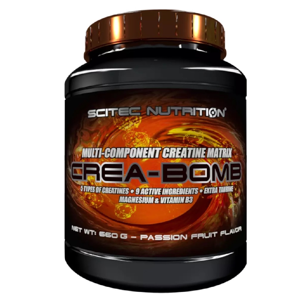 Crea-Bomb Matriz multicomponente de creatina 5 tipos de creatinas 9 ingredientes activos Taurina adicional Magnesio y vitamina b3 La diversidad y el trabajo en equipo tienen muchas ventajas. No es preciso tomar parte en el debate imposible de decidir sobre la mejor forma de creatina: se pueden tomar muchos tipos a la vez. Es posible “bombardear” las células de los músculos con tipos importantes de creatina con CREA-BOMB. Nuestra mejor matriz, con 6 tipos de creatina, proporciona, entre otros, la forma más avanzada de creatina. Se ha demostrado científicamente que esta dosis de creatina (al menos 3 gramos al día) mejora el rendimiento físico en series sucesivas de ejercicios breves de alta intensidad*.Muchos de nuestros ingredientes seleccionados también contribuyen a uno o más de los siguientes efectos fisiológicos beneficiosos*: Síntesis proteica normal Funcionamiento normal del sistema nervioso: neurotransmisión y contracción muscular incluyendo el músculo del corazón Reducción del cansancio y la fatiga Metabolismo energético normal Función psicológica normal Equilibrio electrolítico Mantenimiento de los huesos y dientes en condiciones normales * Estas afirmaciones han sido autorizadas por la Autoridad Europea de Seguridad Alimentaria (EFSA).